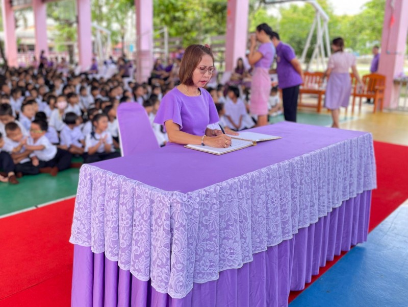 นางสุภาวดี เดิมสลุง ผู้อำนวยการโรงเรียน และนางสาวรดา เกริกชัยเจริญกุล รองผู้อำนวยโรงเรียน นำคณะครู บุคลากรทางการศึกษา เข้าร่วมพิธีถวายพระพรชัยมงคล และลงนามถวายพระพร เนื่องในโอกาสวันเฉลิมพระชนมพรรษา “สมเด็จพระนางเจ้าสุทิดา พัชรสุธาพิมลลักษณ พระบรมราชินี” 3 มิถุนายน โดยถือเป็นกิจกรรมที่แสดงถึงความจงรักภักดีต่อสถาบันพระมหากษัตริย์ และเพื่อสำนึกในพระมหากรุณาธิคุณของพระองค์ต่อพสกนิกรชาวไทย |